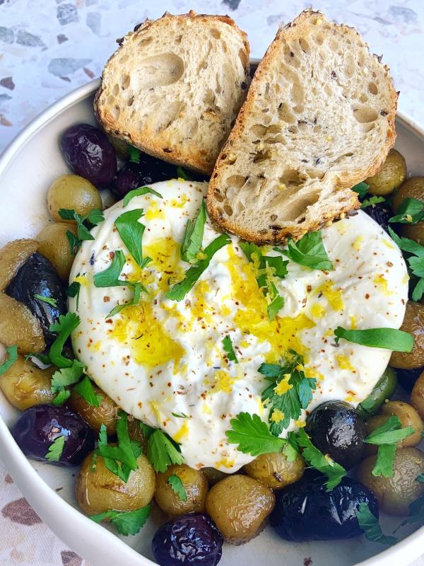 Si vous êtes un burrata lover et que vous ne connaissez pas cette association raisins et olives au four, je vous conseille vivement d’essayer !