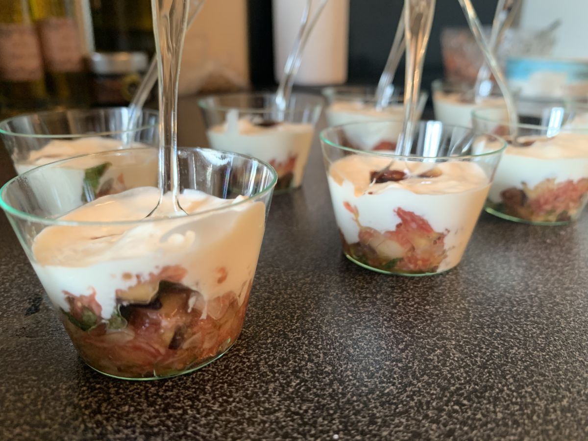 Verrine de Stracciatella et tartare d’amandes, menthe et figues